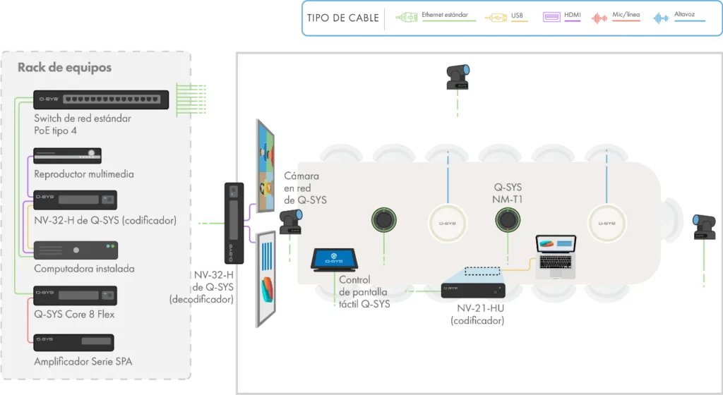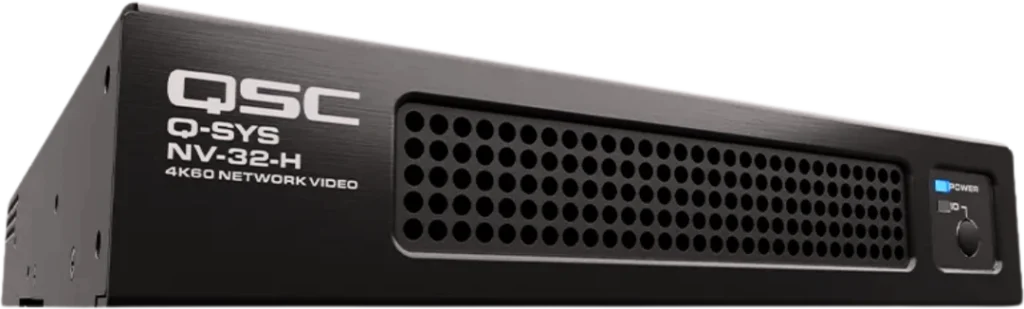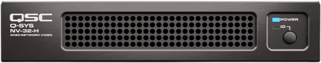 El NV-32-H (Core Capable) es un terminal de video multipropósito, configurable por software, nativo de la plataforma Q-SYS, que ofrece dos modos operativos distintos para elegir, según las necesidades de la aplicación. El «modo Core» transforma el dispositivo en un procesador Q-SYS completamente integrado con capacidades de conmutación HDMI local. El «modo periférico» permite la codificación o decodificación de video de transmisión múltiple para la distribución de video HDMI basada en red. Al igual que todos los dispositivos Q-SYS, el NV-32-H (Core Capable) ofrece integración nativa y control impulsado por el sistema operativo Q-SYS, simplificando la instalación y configuración al tiempo que elimina la necesidad de conocimientos avanzados de programación. Con su integración con la plataforma Q-SYS, puede recibir actualizaciones de firmware firmadas criptográficamente, lo que garantiza actualizaciones seguras en funcionalidad y seguridad para todo su sistema.