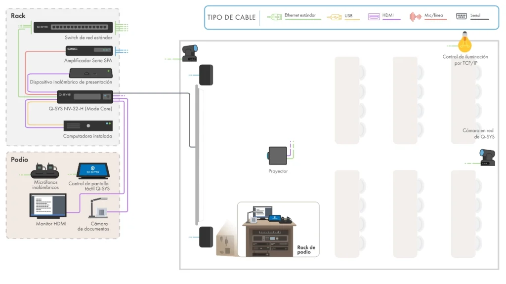Conexión LAN Gigabit para interconexión con Q-LAN. Alimentación PoE 802.3bt Tipo 4.