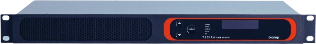 TesiraFORTÉ VT es un servidor de audio digital (DSP de entrada/salida de audio fijo) con 12 entradas analógicas y 8 salidas analógicas, e incluye tecnología de cancelación de eco acústico (AEC) en las 12 entradas. incluye hasta 8 canales de audio USB configurables, una interfaz VoIP de 2 canales y una interfaz telefónica FXO estándar.