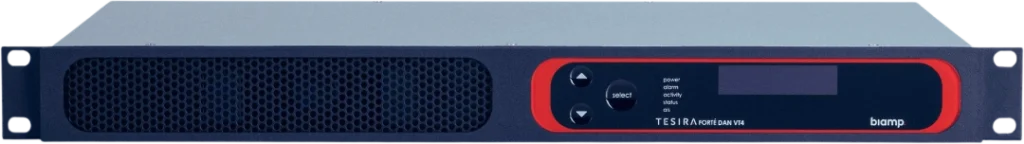 TesiraFORTÉ DAN CI es un servidor de audio digital (DSP de entrada/salida de audio fijo) con 12 entradas analógicas y 8 salidas analógicas, e incluye tecnología de cancelación de eco acústico (AEC) en las 12 entradas. incluye también hasta 8 canales de audio USB configurables. Cuenta con un puerto de audio digital DANTE